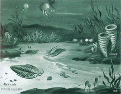 地球上最早的脊椎动物是一种无颌的鱼形动物,经过长时间的探索科学家们终于在我国早寒武世澄江生物群中发现了迄今所知的最早的脊椎动物--昆明鱼和海口鱼。这一重大发现表明,“脊椎动物在早寒武世就已经开始分化了”。地球上的第一条鱼终于发现了。 达尔文在撰写<<物种起源>>时,寒武纪地层突然出现了结构非常复杂的三叶虫的事实让他感到非常头疼,因为在当时还没有发现任何寒武纪之前的动物化石记录。以后,虽然前寒武纪的化石不断的被发现,但化石记录给世人展示的仍然是一幅早寒武世生物在短短的几百万年间爆发式演化的图景。 自1960年以来,人们开始用“寒武纪大爆发”来称呼这一生物演化事件。寒武纪大爆发最有力的证据就是1984年在云南省澄江发现的澄江生物群。研究表明,5.3亿年前云南东部是一个充满勃勃生机的汪洋大海,几乎所有的现在“门”一级的动物--从低等的海绵动物到高等的脊索动物,在这里都可以找到自己的代表。 早寒武世昆明鱼和海口鱼的发现,不但将脊椎动物的化石记录至少提前了2000万年,而且丰富了澄江生物群多姿多彩的面貌,为揭示寒武纪大爆发高阶元类群出现的机制,探讨脊椎动物起源提供了关键资料。“最早脊椎动物的发现”也因此被列为1999年中国十大科技新闻之一。 | | |