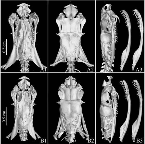 图2 新种红斑高山蝮的头骨CT三维重建模型(侯叶茂 供图)