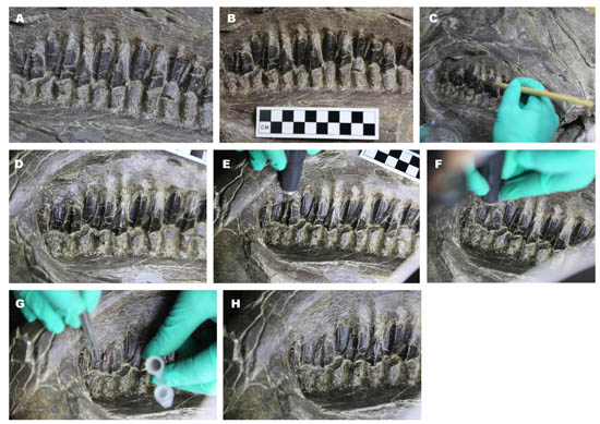 图1 早白垩纪晚期马鬃龙牙齿周边特殊结构的采样方法(吴妍供图)