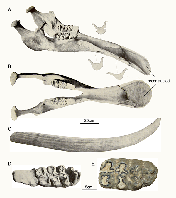 图1 颌铲象标本图,主要根据Barbour and Sternberg(1935)(李春晓 供图)