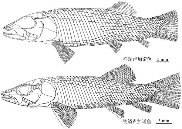 中国科学院古脊椎动物与古人类研究所徐光辉研究员在我国黔西南(贵州兴义)发现了两亿四千万年前一种新的基干新鳍鱼类化石,命名为祥瑞卢加诺鱼。祥瑞卢加诺鱼保存十分精美,但数量稀少,是贵州兴义生物群(或贵州龙动物群)中最稀有的鱼化石品种。它代表了卢加诺鱼类在亚洲的首次发现,将该鱼类的发布从当时分割欧亚的古特提斯海洋西缘延伸扩展到了东缘,为三叠纪时期欧洲和华南生物物种的交流提供了新的化石证据。 研究成果近期于《古脊椎动物学报》在线发表。