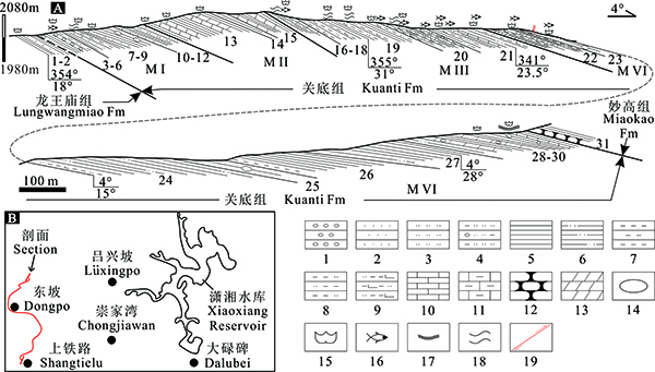 图1A 曲靖地区上铁路-东坡志留系关底组实测剖面