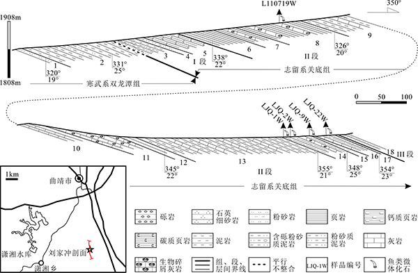 图1B 曲靖地区刘家冲志留系关底组实测剖面