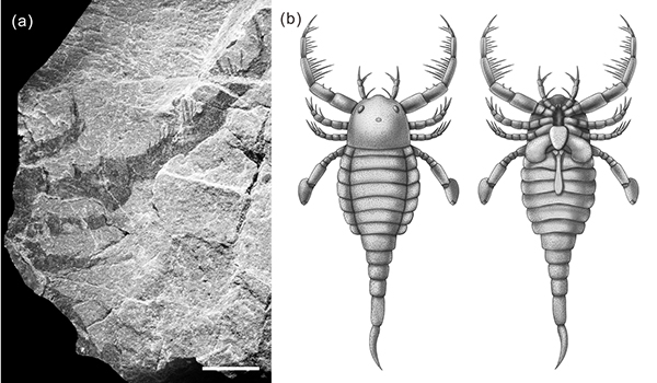 图1 秀山恐鲎(Terropterus xiushanensis)化石及复原图(杨定华绘)