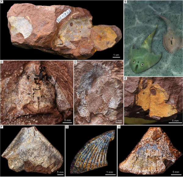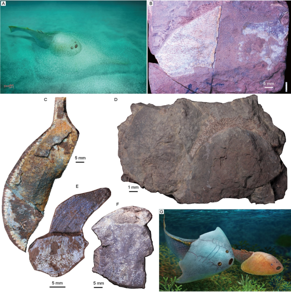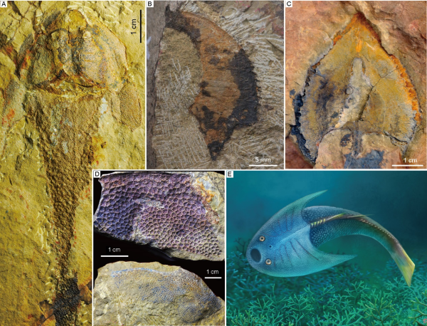 中国科学院古脊椎动物与古人类研究所的硕士研究生山显任为论文第一作者,盖志琨研究员为论文通讯作者。本研究得到中国科学院战略性先导科技专项、国家自然科学基金、中国科学院前沿科学重点研究计划等项目的资助。20年来,本项研究得益于社会多方人士在野外考察中的帮助和支持,感谢中国科学院南京地质古生物研究所戎嘉余院士、王怿研究员在湘西、重庆野外的交流与深入讨论。近十年来参加野外工作的有赵日东、孙智新、黄仁杰、孙百川、孟馨媛、姜文瑜、憨化蜜、张宁、张淑荣、姜杭云等, 安徽宁国野外承蒙王五一,巢湖野外承蒙邹金童、林威(安徽地质博物馆),江西九江野外承蒙韩山群、张宇巍(澧溪镇人民政府)、严允(武宁县博物馆)、余辉(武宁县自然资源局), 湘西野外承蒙王根贤(湖南省地质研究所)、杨三保、田兴易(花垣县司法局),重庆秀山野外承蒙魏光飚(重庆市地质调查院),新疆野外承蒙郭宪璞(中国地质科学院)、蔺军(中石化新疆分公司)、谭小翠(阿克苏科技局),湖北野外承蒙刘一龙、纵瑞文(中国地质大学(武汉))、刘汉生(湖北省地质科学研究院),浙江长兴野外承蒙金幸生(浙江自然博物馆)等先生的大力协助,在此一并表示诚挚的谢意。感谢武汉地质大学纵瑞文提供武汉盔甲鱼类生态复原图,安徽巢湖周正军先生提供巢湖侯家塘组古木鱼类化石照片,中石化新疆分公司蔺军先生提供塔里木野外剖面照片;感谢芦秀芬女士、刘弘毅先生修理化石标本。