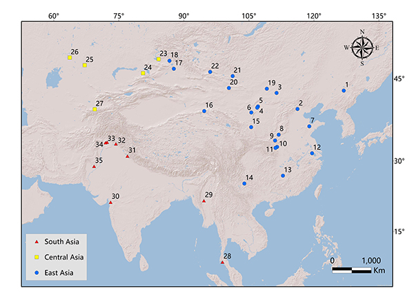 图1. 早始新世至早渐新世亚洲啮齿类化石分布