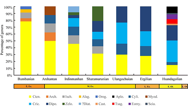 图2. 早始新世至早渐新世东亚啮齿类动物群组合