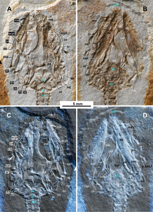 莫旗动物群(Yu et al. 2022)发现于内蒙古呼伦贝尔盟莫力达瓦旗(简称莫旗)宝山镇东北部,主要产自鸽子洞和贾西口两个化石地点。该动物群包括了叶肢介、昆虫、蜘蛛等多种无脊椎动物和鱼类、两栖类、龟鳖类和鸟类等主要的脊椎动物,其中最为突出的特点是产出了大量处于不同发育阶段的蛙类化石,为研究早期蛙类的发育和演化提供了十分罕见的化石材料。