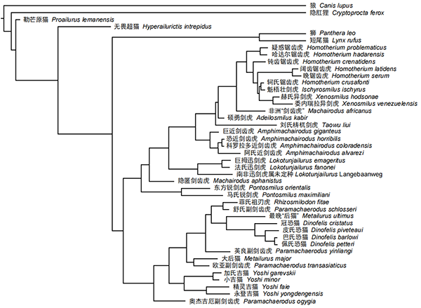 剑齿虎亚科是猫科动物中犬齿特化增大的一个类群,其巨大的犬牙极具威慑力,为人们所熟知。事实上,这些犬牙非常发达的剑齿虎只是剑齿虎大家族中的一部分。在剑齿虎最繁盛的晚中新世时期(1100-530万年前),占据剑齿虎类多样性主体的是一类被称作后猫(metailurine felids)的动物。相比起体型巨大,犬牙夸张的剑齿虎族,后猫类的体型较小(一般从猞猁到美洲豹大小),犬牙明显比剑齿虎要小,头骨则一般更加浑圆,外观上反而和现代猫亚科的动物近似,占据了类似的生态位。后猫类动物早在1924年就发现于我国北方地区,后来有多次报道,但是很少有研究系统讨论东亚地区的后猫和欧洲乃至非洲,北美相关物种的关系,其迁徙,演化和分类系统都有诸多不明之处。