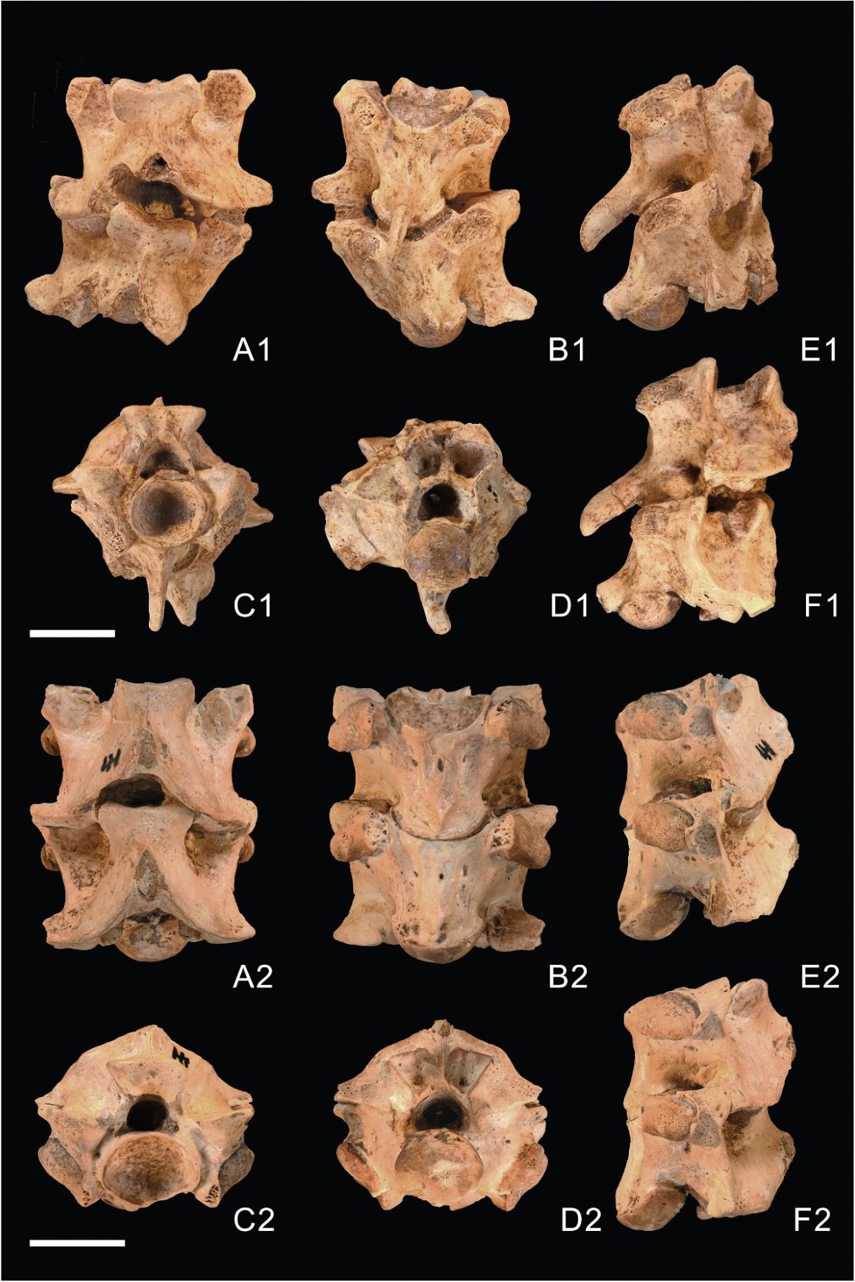 由于此次发现的蛇类骨骼尺寸较大,研究人员基于现生蛇类中最能反映椎骨长宽的4个测量项,利用多元线性回归分析,估算了部分骨骼材料所代表的蛇类体型。结果显示,其中最大的一枚缅甸蟒中段脊椎骨所代表的个体,最小头体长(吻肛距)为3.88米,全长4.58米,超过《中国动物志》记载的国内最大记录(头体长3.17米,全长3.56米)。