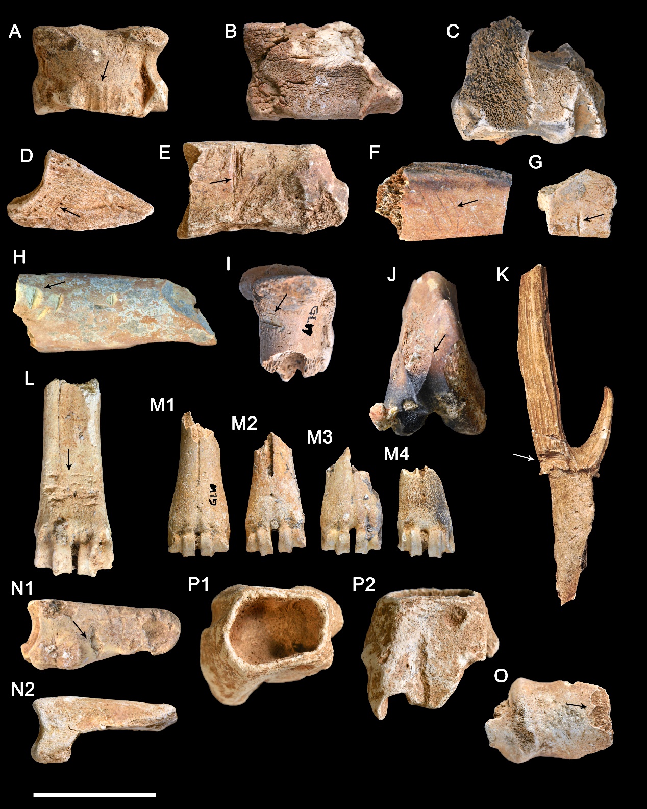 左江流域贝丘遗址哺乳动物骨骼表面的人工痕迹(切割、敲砸、烧灼、制骨、齿痕等)