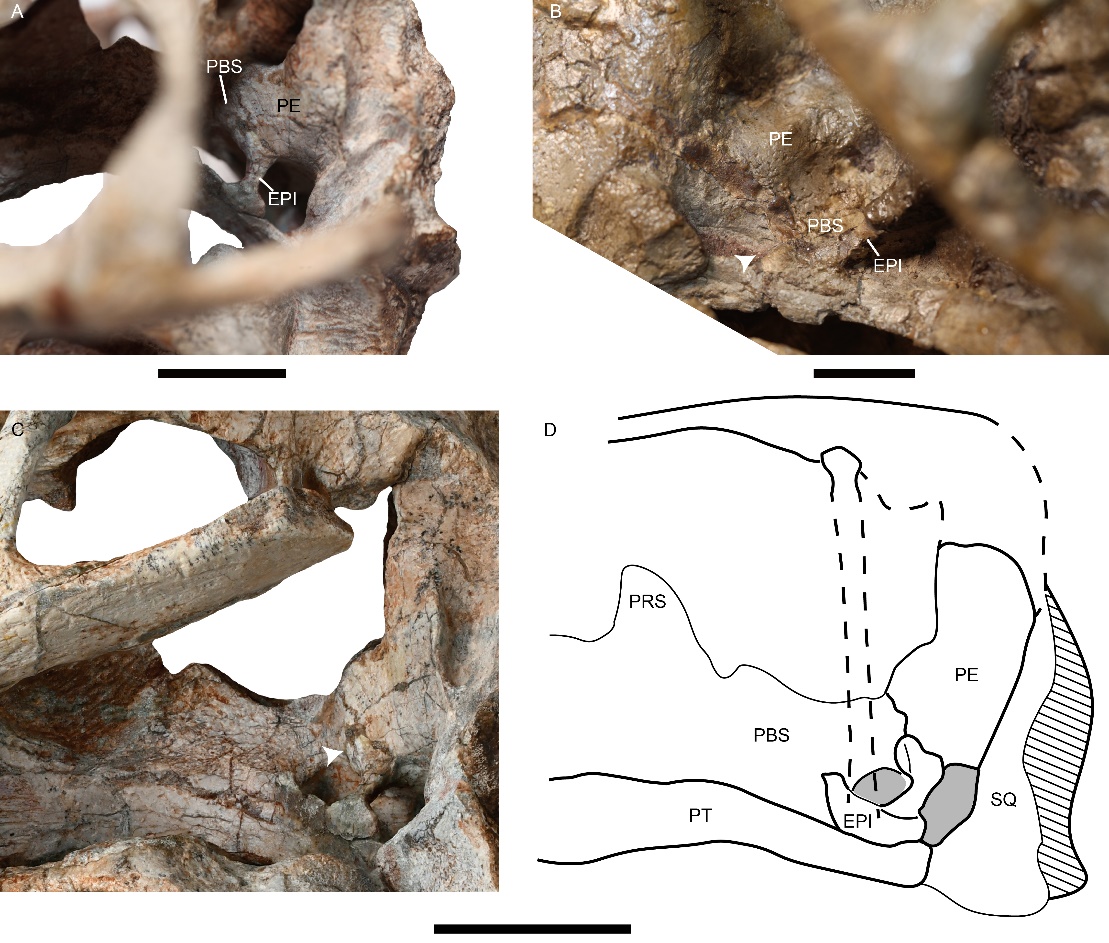 图4. 箭头指向的是上翼骨与脑匣的连接处