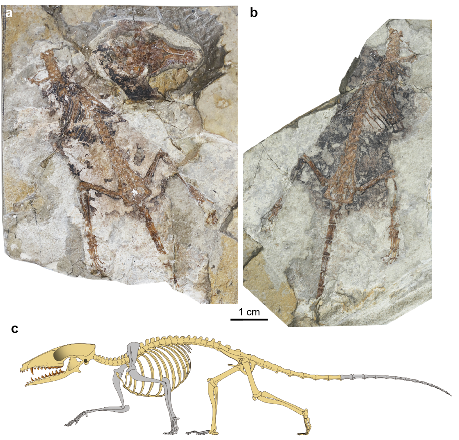 图2. 梦幻小兽正型标本及复原图(骨骼复原图 陈瑜 绘)