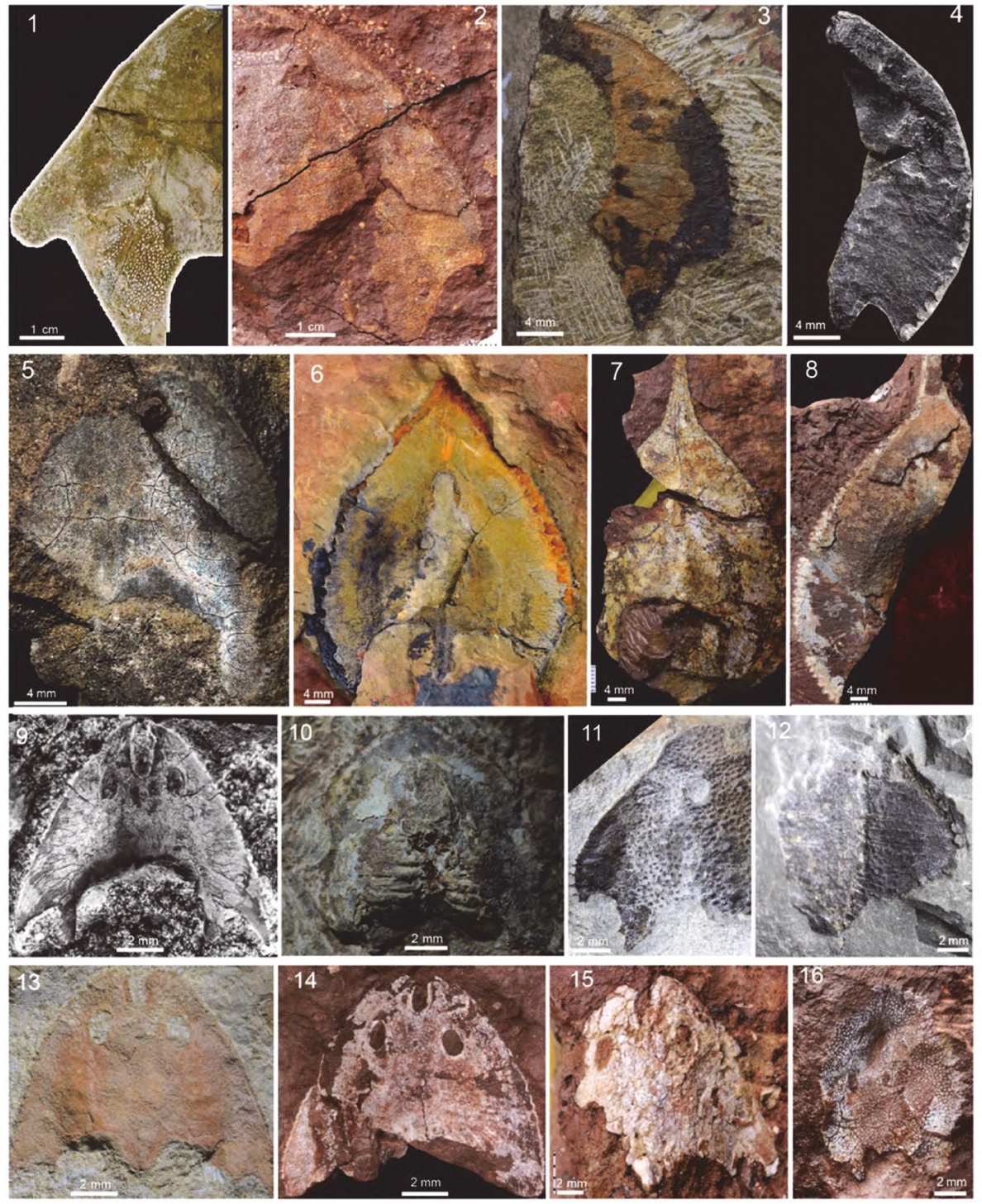 在志留系海相红层对比中,古鱼类化石发挥了重要作用。华南志留纪的鱼化石群动物地理区域性极强, 大量属种系华南和塔里木两个板块所特有,这些鱼类栖息在较为特殊的近岸、浅水、不同程度淡化的海域环境里。在这些地层中, 除鱼类化石外, 其他具有标准化石意义、正常盐度的无脊椎动物较为稀少, 这给地层对比带来诸多不利。经过数十年、尤其是近些年来的深入采集和研究,以盔甲鱼类为主体的志留纪生物地层序列已经逐渐建立并不断完善。其中,以曙鱼科为特征的温塘组合是华南志留系第一套海相红层(如康山组、清水组、锅顶山组、举坑组下段)标志性的脊椎动物, 产出层位较低;以中华盔甲鱼科及涌洞鱼科为特征的茅山组合是志留系第二套海相红层(如迴星哨组、西坑组和茅山组)标志性的脊椎动物,其在生物演化的阶段性方面与温塘组合有明显的差别。温塘组合广泛分布在华南地区的湘西北、赣西北、浙西北、皖东南、皖东等地志留系第一套红层中,甚至在塔里木地区的相当层位也能找到与其面貌完全一致的鱼类化石组合,丰富的化石记录和广泛的古地理分布使其地层对比的意义尤为突出。