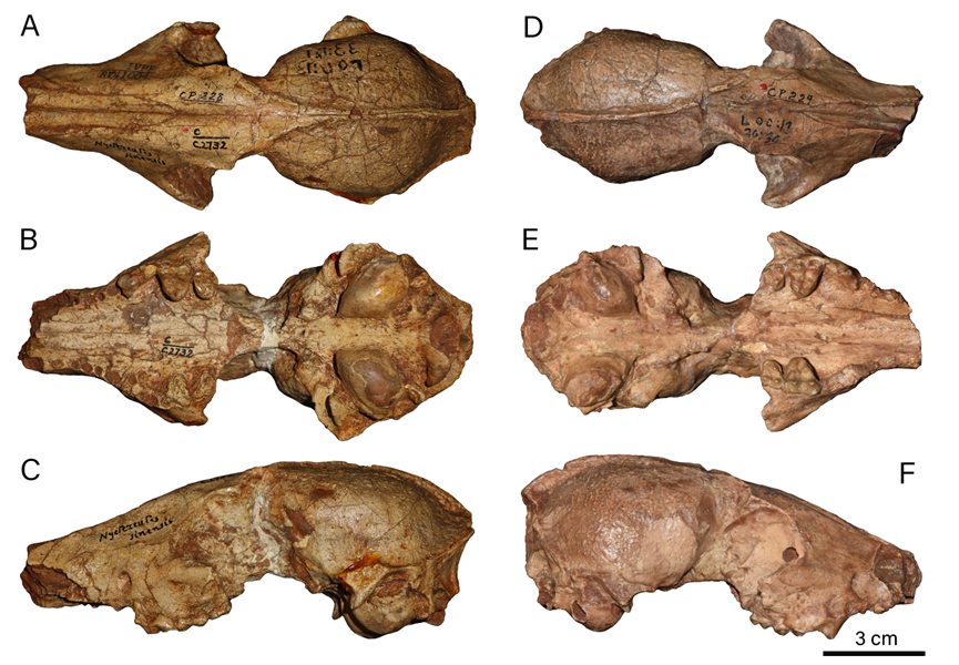 图1 来自周口店十三地点的裴氏貉头骨RV41004(A-C)和 ZD00214(D-F)