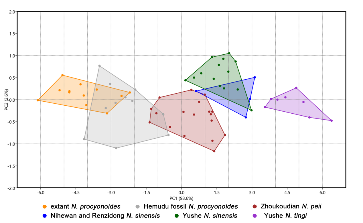 图3 貉(Nyctereutes)不同种群的下牙齿主成分分析