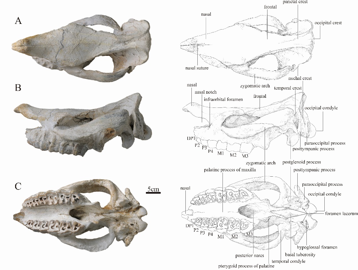 图1 叶氏翘鼻角犀(Prosantorhinus yei)头骨正型标本
