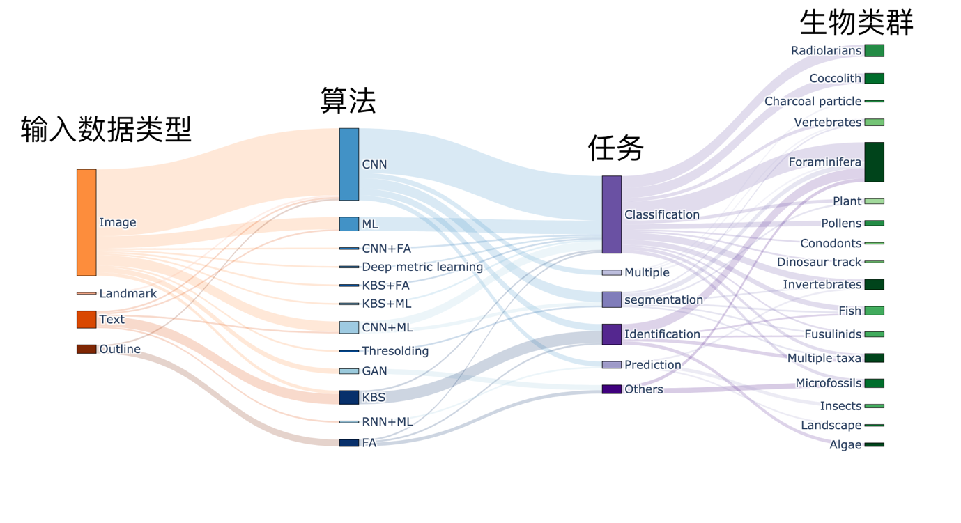 通过构建具有海量参数的模型与庞大的训练数据集,以深度学习为代表的人工智能技术在过去十余年中得到了高速发展,目前已在多个领域取得了巨大的进步。在科研方面,生命科学和地球科学中的各个子领域开始将人工智能技术用于挖掘、处理、分析数据,例如解析蛋白质结构与预报天气,相比“传统”方法或手工操作具有明显优势。作为生命科学与地球科学的交叉学科,古生物学中的人工智能应用较少。