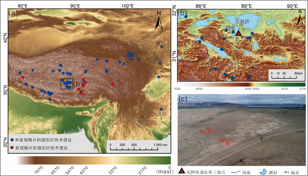 被誉为“世界屋脊”的青藏高原海拔高、辐射强、动植物资源匮乏,恶劣的环境给人类的生存带来了诸多障碍。人类何时进入青藏高原,如何在高海拔区域适应是了解人类应对极端环境的重要课题。细石叶技术是青藏高原发现的分布最广泛的史前文化遗存,对于研究人类何时呈规模地进入高原,并进一步实现在高原的连续演化直至定居的过程有重要意义。但由于青藏高原特殊的埋藏环境,在高原发现的有明确地层堆积的遗址并不多,而且多位于青藏高原东北部的边缘地区,青藏高原腹地细石叶技术的考古信息相对缺乏。这使得探究高原腹地细石叶技术的来源及其背后人群的适应过程面临挑战。