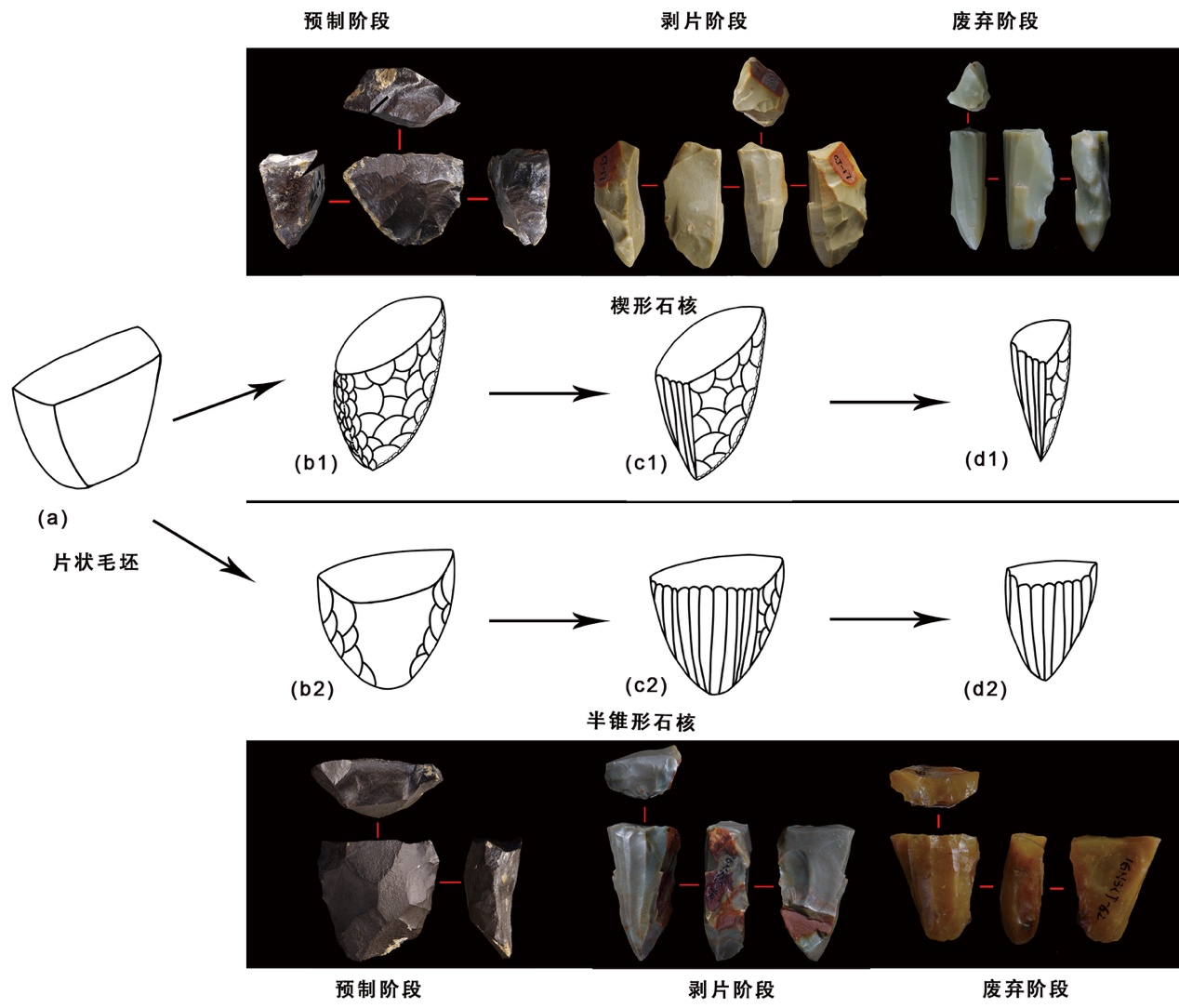 图4.尼阿底遗址第3地点细石叶技术的剥片序列(供图:靳英帅)