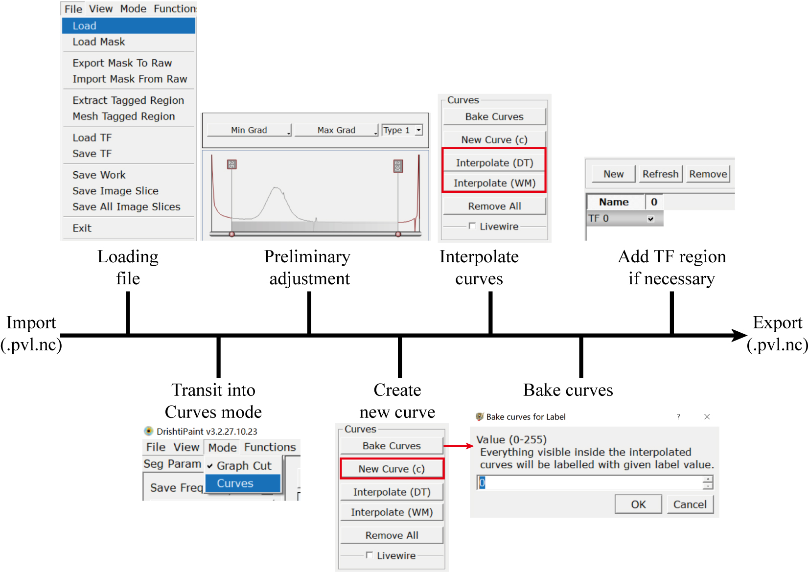 本研究介绍了三维可视化开源软件Drishti Paint 3.2版本中的曲线模式(Curves Mode)及其使用方法。Drishti是一个全流程的CT 扫描数据分割与可视化平台。除了三维数据分割以外,Drishti还提供了文件格式转换和表面模型渲染等工具。Drishti软件新推出的3.2版本为研究者提供了同时在二维切片及三维窗口手动或半自动分割CT数据的新工具,大大减少了分别在二维与三维界面中进行分割时互相修正的工作量,为如何对古生物学研究中化石CT数据进行高效的三维分割与重建提供了新思路。