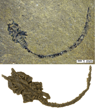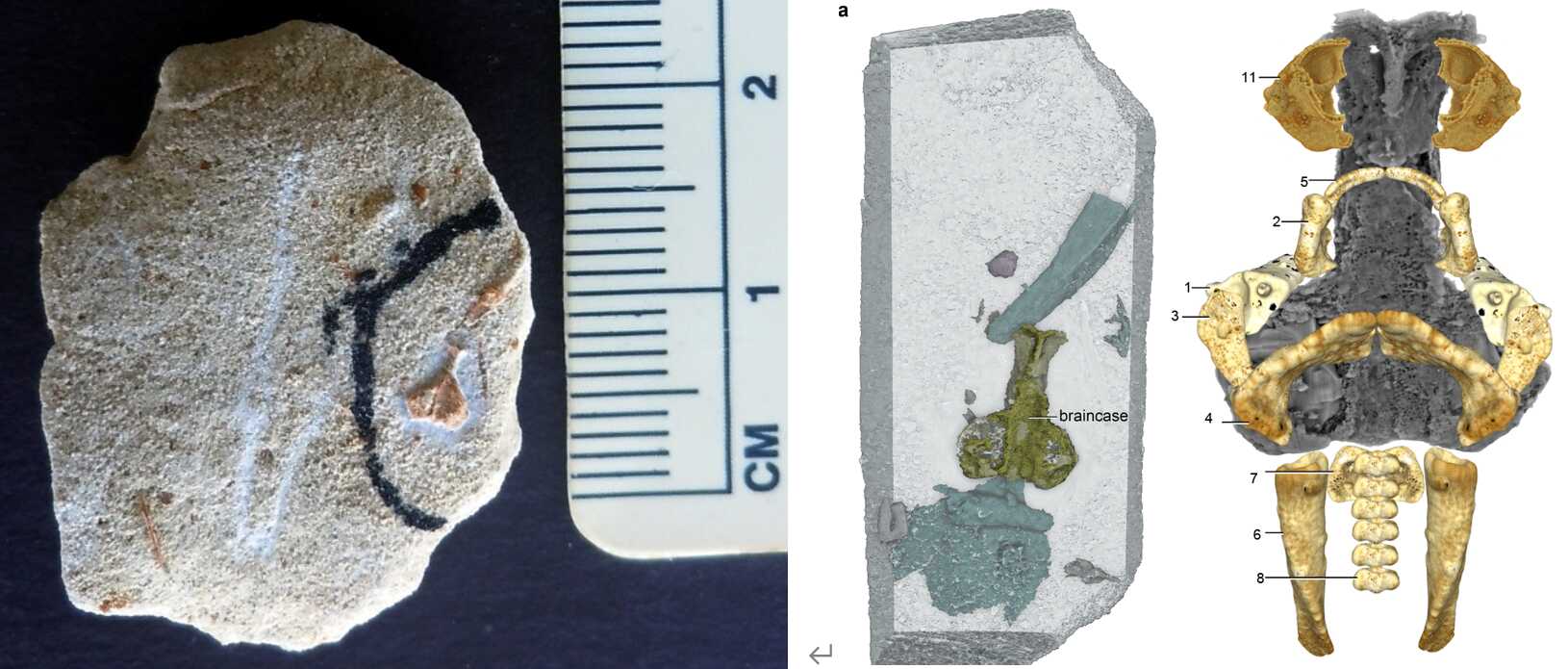 图4苏格兰古椎鱼化石照片(左)与CT数据跨平台三维重建结果(右)