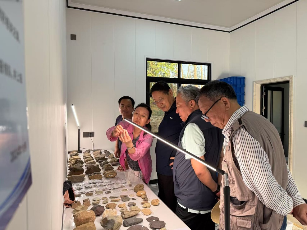 图6 到访专家王巍先生一行观察南或河遗址的考古标本