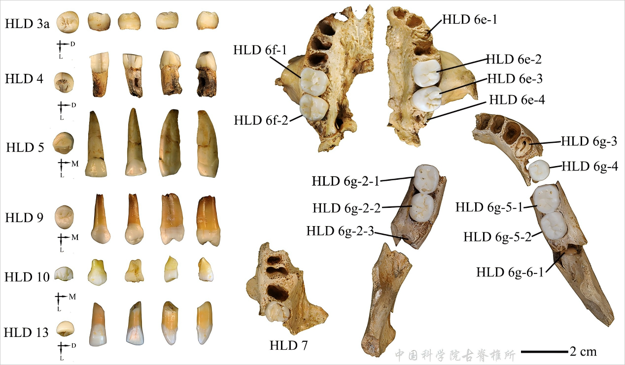 值得注意的是,华龙洞牙齿并不具有典型的尼安德特人特征。华龙洞牙齿比丹尼索瓦人的牙齿或暂时归类于该群体的标本(如夏河遗址发现的下颌骨)的牙齿更为进化。夏河下颌骨异常粗壮,下颌联合后退明显,牙齿尺寸处于直立人范围。总的来说,HLD 样本属于一个不同于经典直立人的群体,但又不同于迄今归于丹尼索瓦人的化石。