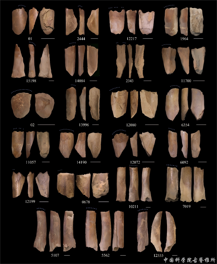 选材分析表明,46 件权宜骨器(expedient bone tools)多以普氏原羚(Procapra przewalskii)股骨为原料,特别是该部位的完整骨管(图2);另有少量来自一些中小型食草动物的胫骨、桡骨与肋骨。这一材料选择显示,SDG 12先民对骨质工具的原料已有稳定偏好,尤其注重长骨在强度、长度和使用便利性方面的优势。