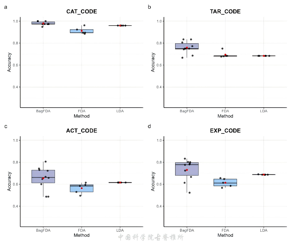 图4 BagFDA、传统的线性判别分析(LDA)和灵活判别分析(FDA)准确率对比