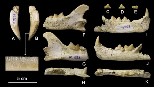 图3 保加利亚Hadjidimovo-1地点的副剑齿虎上犬齿及下颌化石 (李雨供图)
