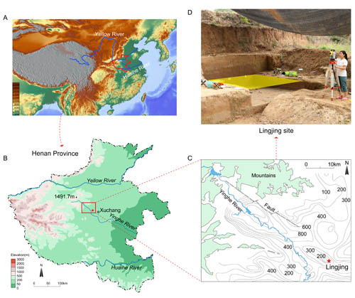 “许昌人”遗址位于河南省许昌市灵井镇,是一处由泉水形成的水塘或小型湖泊(滨湖相)遗址。遗址出土的两具古人类头骨化石兼具中更新世古老型人类、早期现代人与尼安德特人的特征,光释光测年结果为距今约12.5-10.5万年,相关成果于2017年3月发表在美国Science杂志。但是,在该遗址的沉积环境及形成过程研究方面,尚未开展详细的工作。为解决这一问题,2017年5-7月中国科学院古脊椎动物与古人类研究所与河南省文物考古研究院组成联合考古队,对该遗址进行了再次发掘。