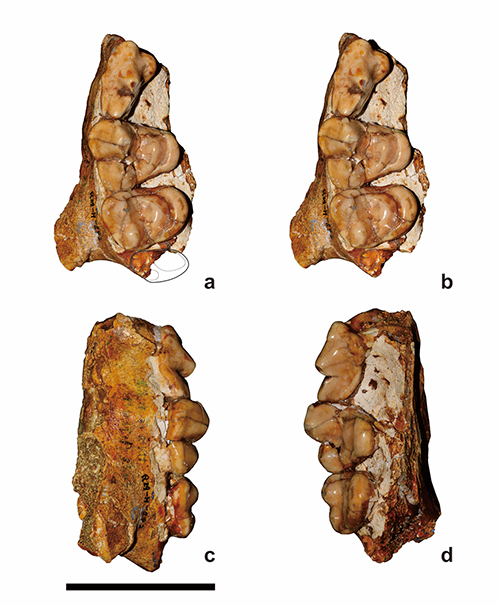 宁夏同心地区近几十年出产了大量的中中新世哺乳动物化石,构成了著名的铲齿象动物群。在这批化石中,不乏有食肉目的成员。最近,古脊椎所博士生江左其杲等报道了产自宁夏同心野狐狸圈子沟的一件犬熊类的上颌化石。进过详细的描述对比,确定为犬熊属的一个新种,即占祥犬熊Amphicyon zhanxiangi,种名献给为中国新生代哺乳动物做出巨大贡献的邱占祥院士。占祥犬熊是一种体型中等的犬熊,稍小于欧洲的大犬熊Amphicyon major和巨犬熊Amphicyon giganteus,但大于北美的葛氏犬熊Amphicyon galushai。占祥犬熊的P4前附尖明显,原尖较大而靠后,M1前尖显著大于后尖,这些特征与欧洲的巨犬熊最为接近,而和欧洲的大犬熊和北美的几种犬熊都不一样。该论文最近在线发表在美国古脊椎动物学报Journal of Vertebrate Paleontology上。