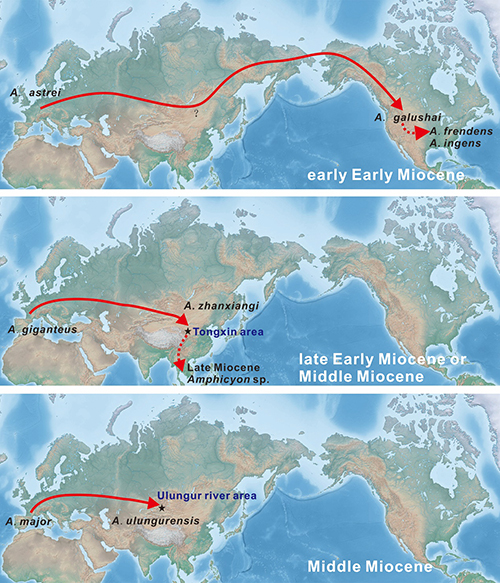 犬熊科是在中新世(2300-530万年前)叱咤风云的食肉目成员,遍布欧亚非和北美。其中分布最为广泛,种类最多的是犬熊属Amphicyon和泽犬熊属Cynelos,二者尤其在欧洲和北美繁盛。然而作为连接欧洲和北美的桥梁,东亚地区二者的化石记录非常零星。