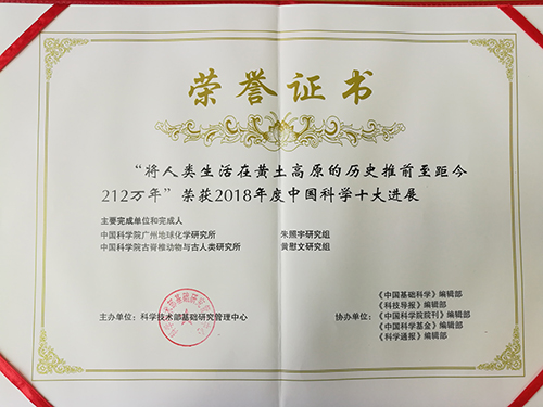 2月27日,2018年度“中国科学十大进展”专家解读会在北京召开,正式对外公布十大进展遴选结果。由中科院广州地化所、古脊椎所等组成的研究团队取得的“将人类生活在黄土高原的历史推前至距今212万年”成功入选。