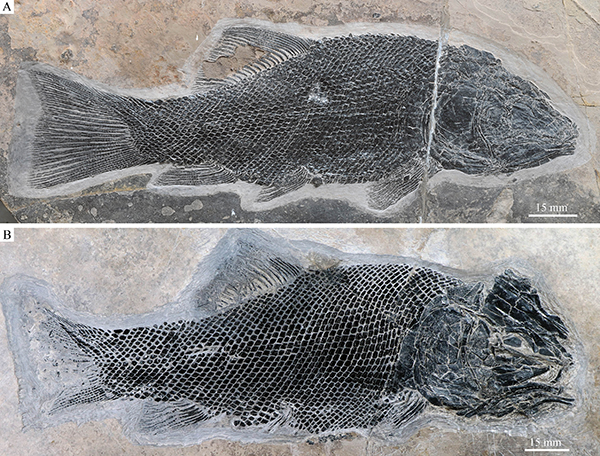 全骨鱼类分为铰齿鱼类和近鲱形类,分别以雀鳝和弓鳍鱼为现生代表。由于全骨鱼类与真骨鱼类(现生脊椎动物中最大的类群)的姐妹群关系,全骨鱼类在新鳍鱼类乃至整个辐鳍鱼亚纲的研究中具有举足轻重的地位。罗平强壮鱼是云南罗平生物群中体型最大的一种全骨鱼类,全长可达40厘米,发现于云南罗平中三叠世安尼期(2.44亿年前)海相地层。现已查明,它也是世界范围内中三叠世(距今2.37-2.47亿年前)地层中所发现的最大的全骨鱼类属种,对于重建三叠纪海洋脊椎动物生态环境无疑具有重要的潜在价值。自2014首次报道并命名以来,罗平强壮鱼成为全骨鱼类研究中备受关注的化石物种。然而,不尽如意的是,因为最初化石数量较为稀少,一些关键的骨骼特征不清楚导致罗平强壮鱼在全骨鱼类中的系统分类位置成为争论不休的问题。一些研究者认为它是近鲱形类的成员,但另外一些研究者将它归入铰齿鱼类。