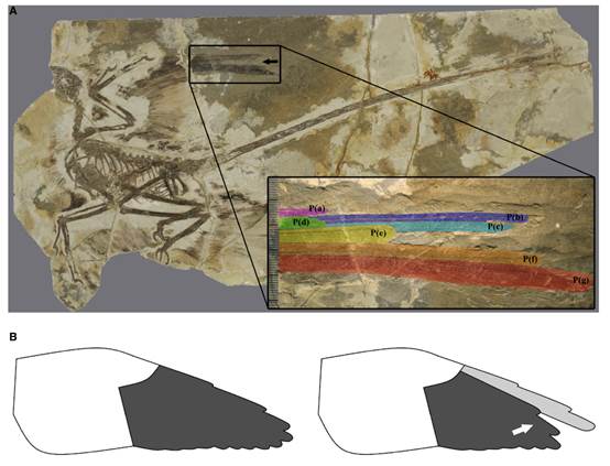 图2.小盗龙化石中发现的顺序换羽行为的化石证据