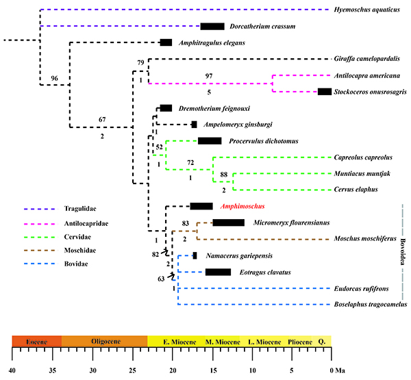 图4 西水半麝Amphimoschus xishuiensis的系统位置