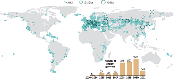图一. 截止2021年6月前每年已发表的人类古基因组数据