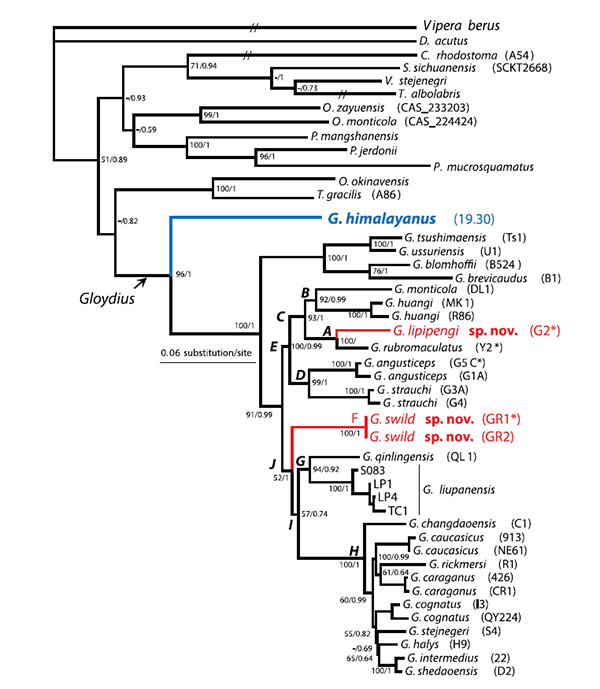 近日,国际动物学杂志ZooKeys刊登一篇名为"Molecular phylogenetic analysis of the genus Gloydius (Squamata, Viperidae, Crotalinae), with descriptions of two new alpine species from Qinghai-Tibet Plateau, China"(亚洲蝮属分子系统学研究,兼论2青藏高原新种)。