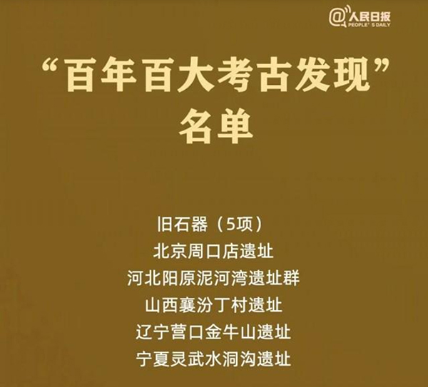 图1. 古脊椎所入围的“百年百大考古发现”名单