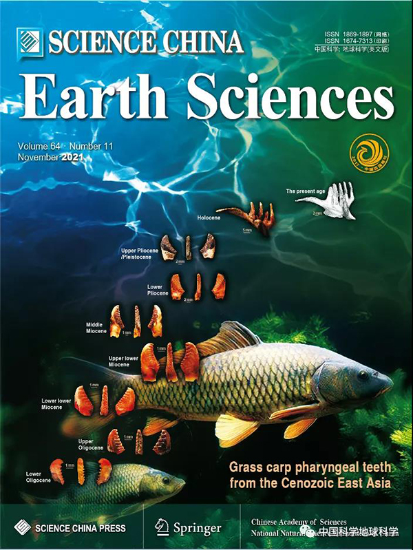 《中国科学:地球科学》英文版2021年第11期发表了英文题为Fossil pharyngeal teeth of grass carp group and their implications for evolution , temporal and spatial distribution pattern, and paleoenvironment的封面文章,同时中文版2021年第11期发表了中文题为草鱼类咽齿化石新属种时空分布格局及其起源演化与古环境意义的封面文章(图1。该文章系统地研究了中国东部地区新近纪以来类草鱼咽齿的演化、时空分布并探讨其古环境意义。