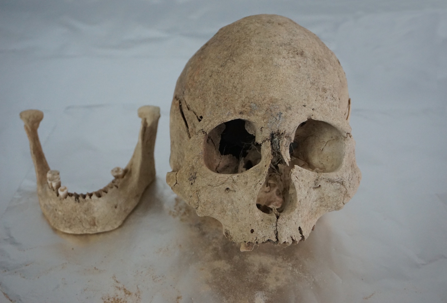 图2: 来自青藏高原东北部共和盆地宗日遗址、距今约4500年的头骨和下颌骨