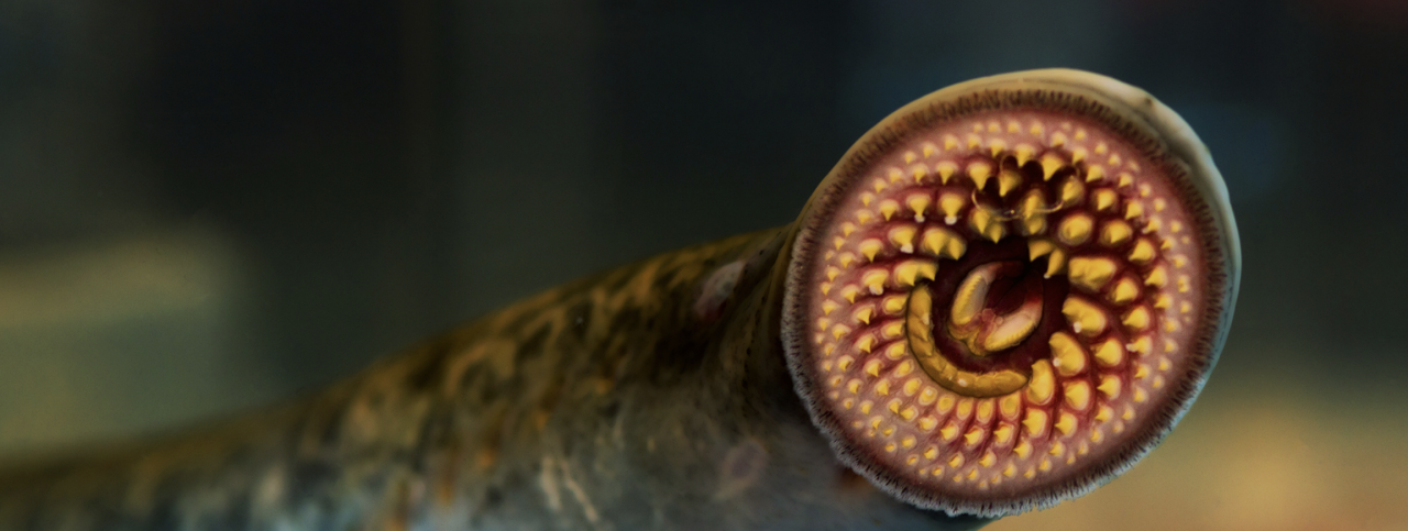 1. 海七鳃鳗(Petromyzon marinus)和它瘆人的吸盘,它是七鳃鳗家族里最著名的“吸血鬼”(Photo by Kentaro Morita)