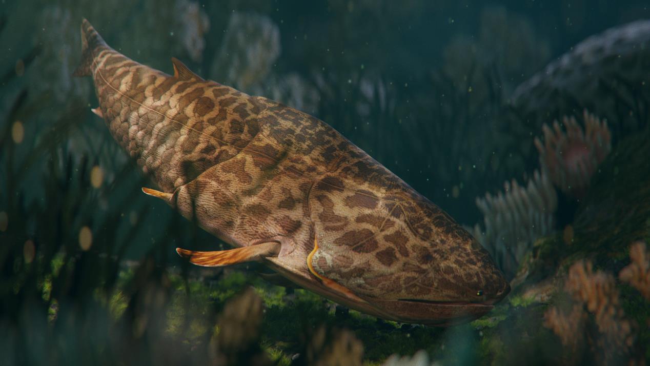 3 根据新发现制作的初始全颌鱼生活复原图 (拟石科技制作)