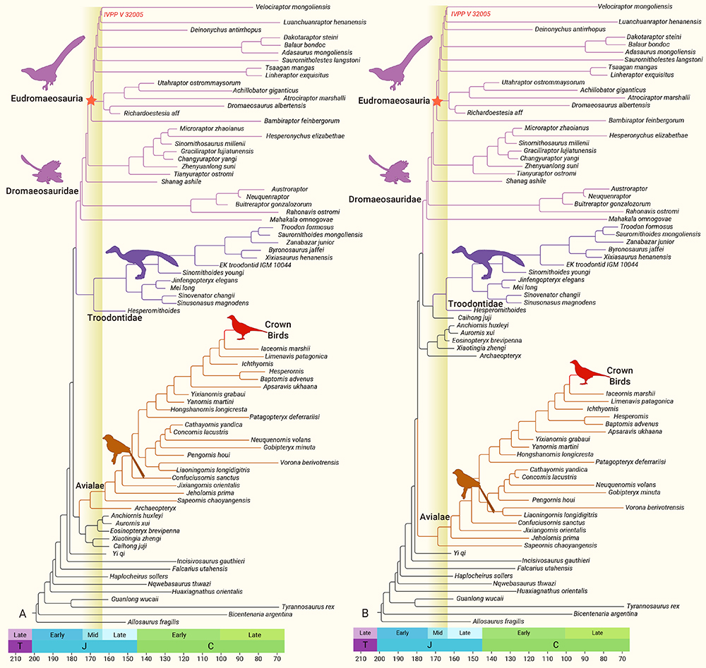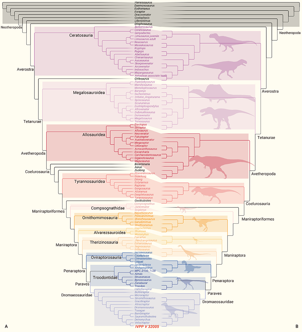 该枚兽脚类牙齿化石发现于东大桥组,年代为中侏罗世。定性的形态学比较显示该枚牙齿与晚白垩世的驰龙类牙齿最为相似。为了定量检验该标本的系统发育位置,研究团队构建了包含146个兽脚类牙齿特征,106个物种的形态学矩阵,并结合限制性搜索,隐含加权法等分析手段进行简约法分析。同时研究团队也将牙齿特征与其它骨骼特征组合起来进行分析。所有的结果都支持该枚牙齿属于进步的驰龙类。