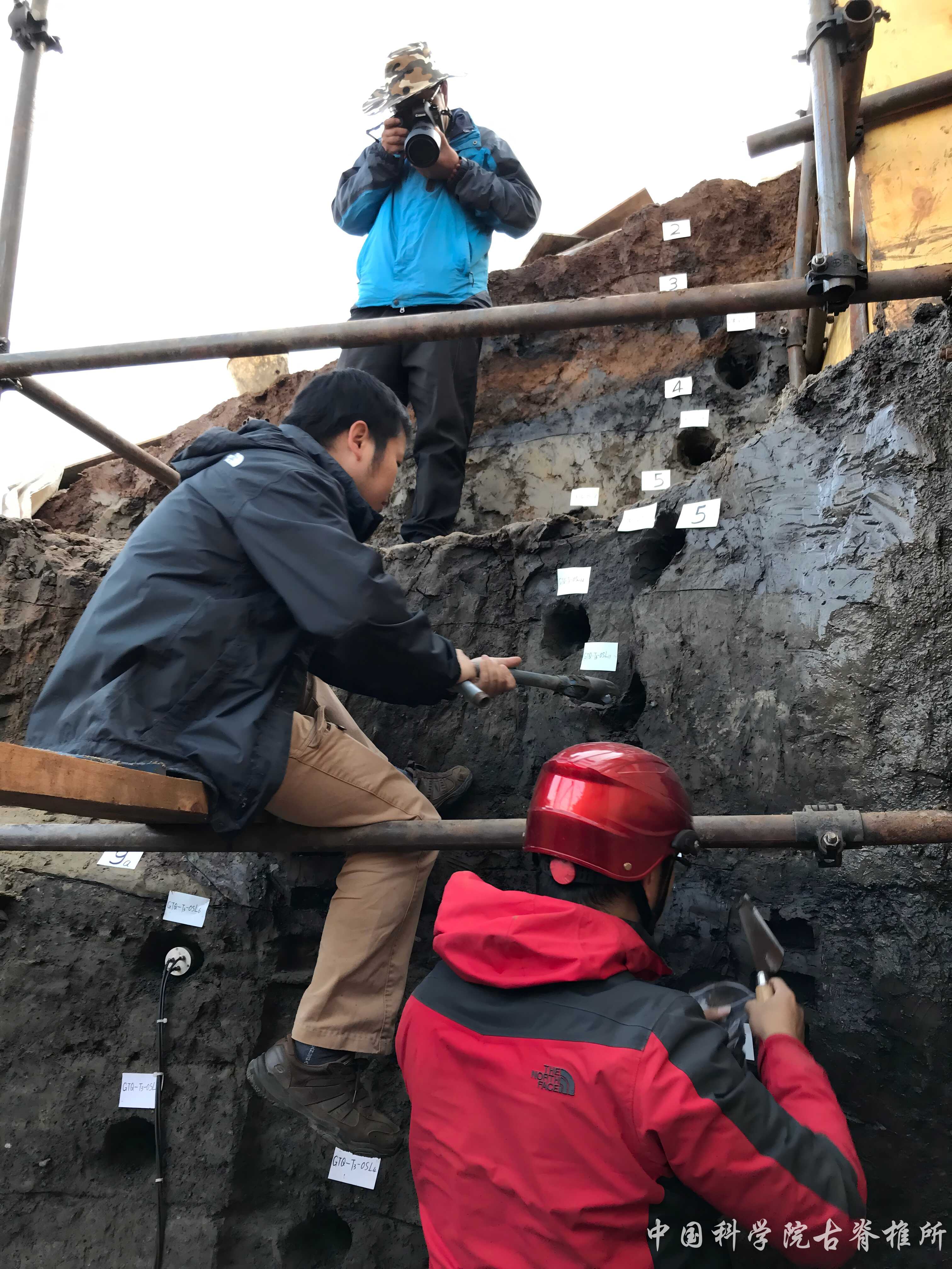 在遗址超出考古界常用的碳十四技术测年范围的情况下,考古队采用了包括古生物地层学、古地磁学、光释光(OSL)、电子自旋共振(ESR)等方法做交叉测年和数据检验。最后依靠OSL技术通过测定钾长石矿物颗粒释光信号,并结合对动物牙齿的ESR方法和贝叶斯分析模型,确定古人类在遗址活动的时间为距今36-25万年。