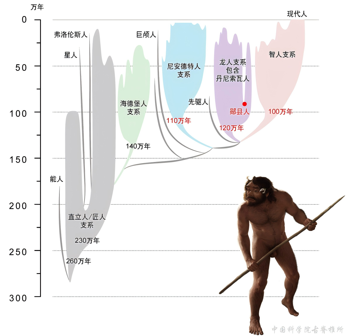 研究团队以郧县人作为关键校准点,构建出全新的人属系统演化树,再借助贝叶斯支端定年法与简约性分析,推算出各个人类支系的分化时间。研究发现智人、龙人和尼安德特人这三支的分化发生得非常早,虽然早于目前化石记录所示,但与基因组数据推测的结果高度吻合。