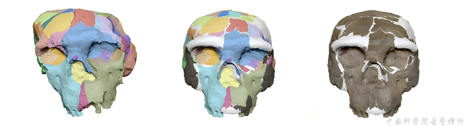 重建后的郧县人2号头骨呈现出原始与进步特征交融的形态:低平的额骨和突出的吻部类似更古老的直立人或海德堡人;而扁平低矮的颧骨、更宽的后脑颅以及较大的脑容量,则与龙人以及大荔、金牛山、华龙洞、许家窑等地出土的中更新世人类化石相似。这件百万年前的头骨脑容量竟超过1100毫升。