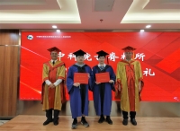 典礼仪式上,周忠和院士和邓涛研究员为毕业生扶正流苏、赠送毕业纪念品。